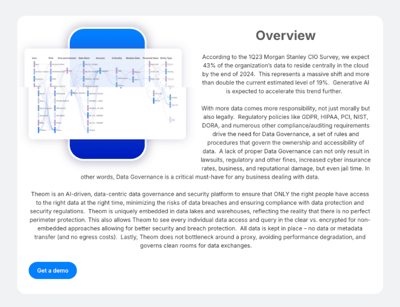 Theom is an AI-driven Data Access Governance (DAG) and Security platform that enables organizations to comprehensively manage, control, and monitor access to sensitive data.